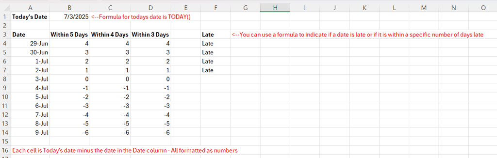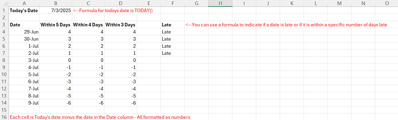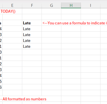 You can use conditional formatting or formulas to let people know when a deadline is near in Excel.
